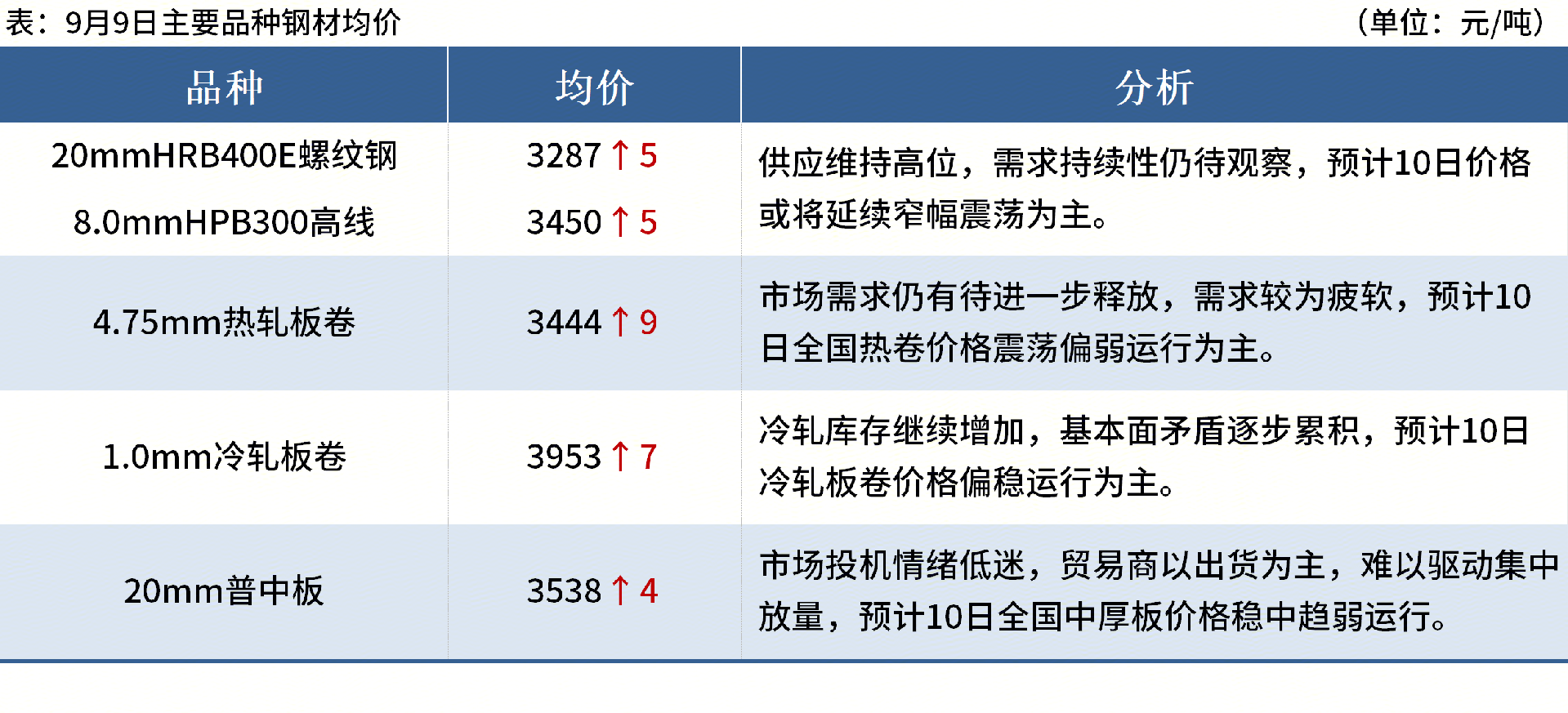◎9月9日,76家獨立電弧爐建筑鋼材鋼廠(chǎng)平均成本為3346元/噸,日環(huán)比增加9元/噸,平均利潤虧損149元/噸,谷電利潤虧損52元/噸。