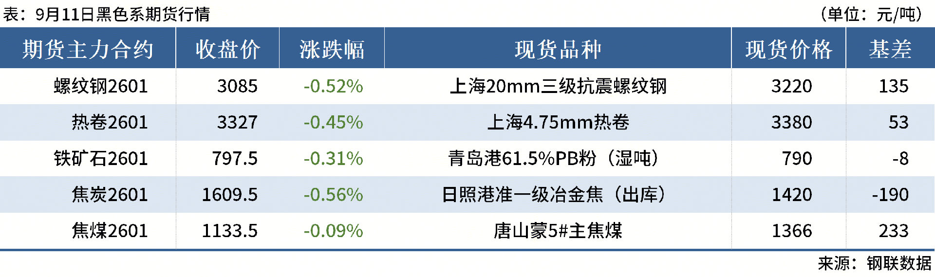 ◎9月11日,全國主港鐵礦石成交112.40萬(wàn)噸,環(huán)比增73.5%;237家主流貿易商建筑鋼材成交9.19萬(wàn)噸,環(huán)比減1.2%。