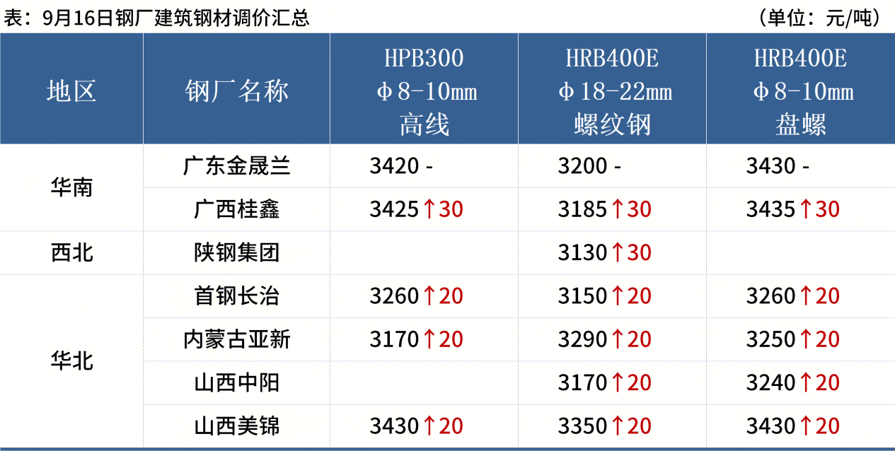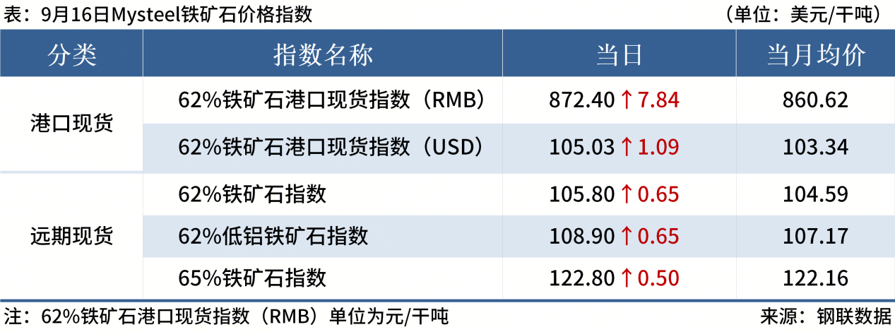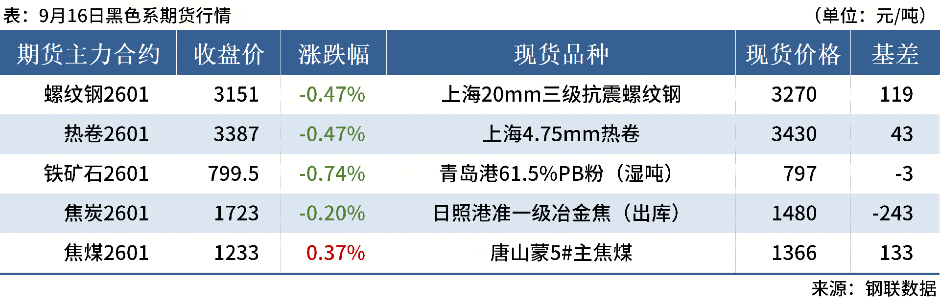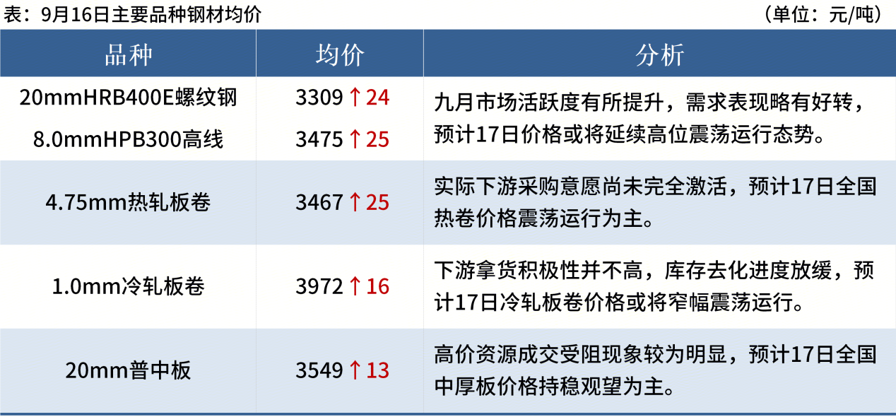 ◎ 9月16日,全國主港鐵礦石成交139.40萬(wàn)噸,環(huán)比增45.2%;237家主流貿易商建筑鋼材成交11.05萬(wàn)噸,環(huán)比減6%。