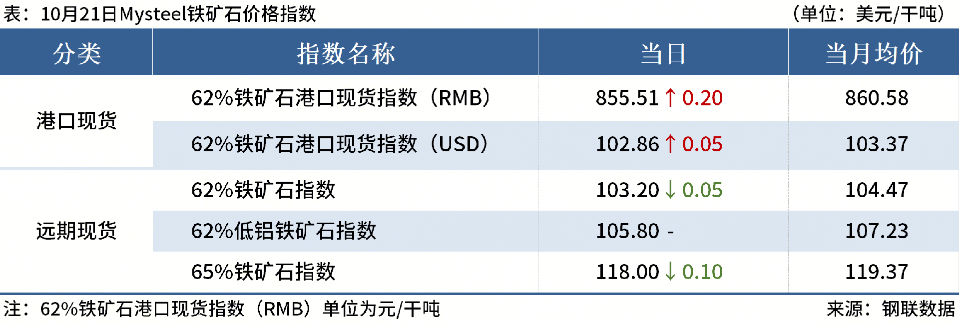 ◎10月21日,全國主港鐵礦石成交101.10萬(wàn)噸,環(huán)比增19.8%;237家主流貿易商建筑鋼材成交10.12萬(wàn)噸,環(huán)比增3.5%。
