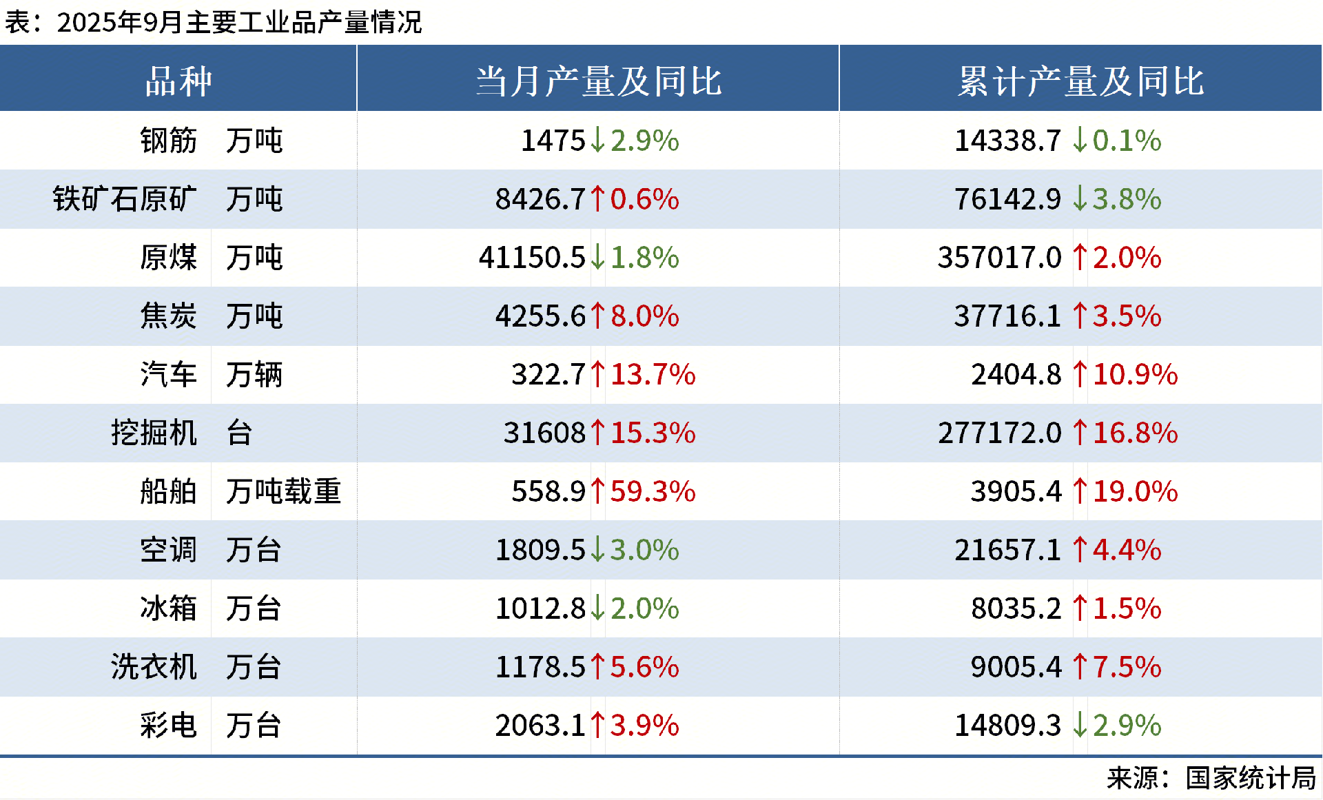 ◎國家統計局數據顯示:9月中國鋼筋產(chǎn)量為1475.0萬(wàn)噸,同比下降2.9%;1-9月累計產(chǎn)量為14338.7萬(wàn)噸,同比下降0.1%。其他主要工業(yè)品產(chǎn)量如下: